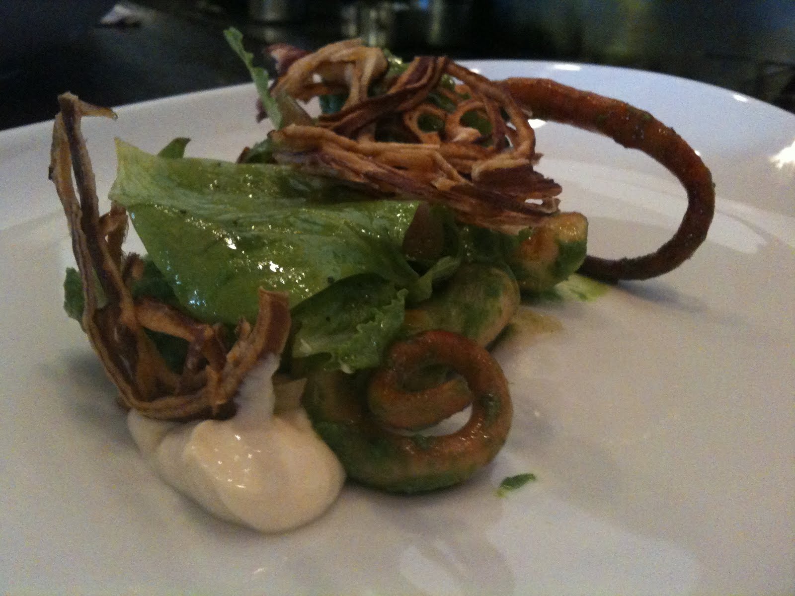 -whipped lardo, winter radishes, sea beans, sorrel and celery leaf, aged sherry vinager